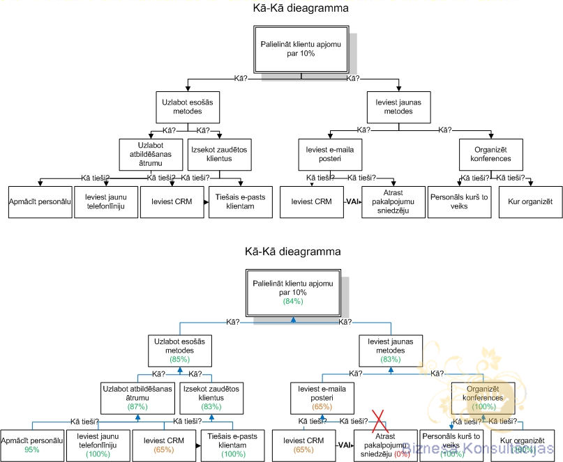 līmeņiem „KĀ”. Hierarhija ilustrē četrus līmeņus. Katrā līmenī jautājot